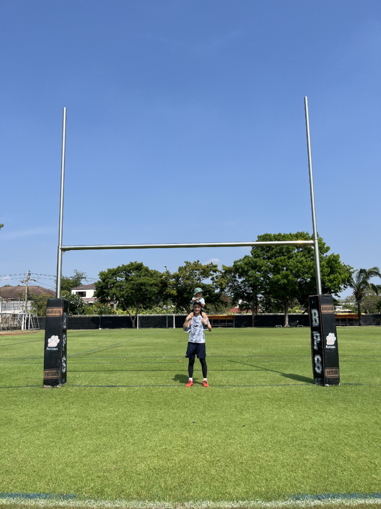 高校時代にラグビー部に所属していたこともあり、タイの日本人会が運営するキッズラグビースクールに週末息子と一緒に通い練習しながら汗をかき過ごしています。息子にはスポーツを通じて様々なことを学び、諦めない姿勢やチームワークとは何かを感じ取ってほしいと願っています。