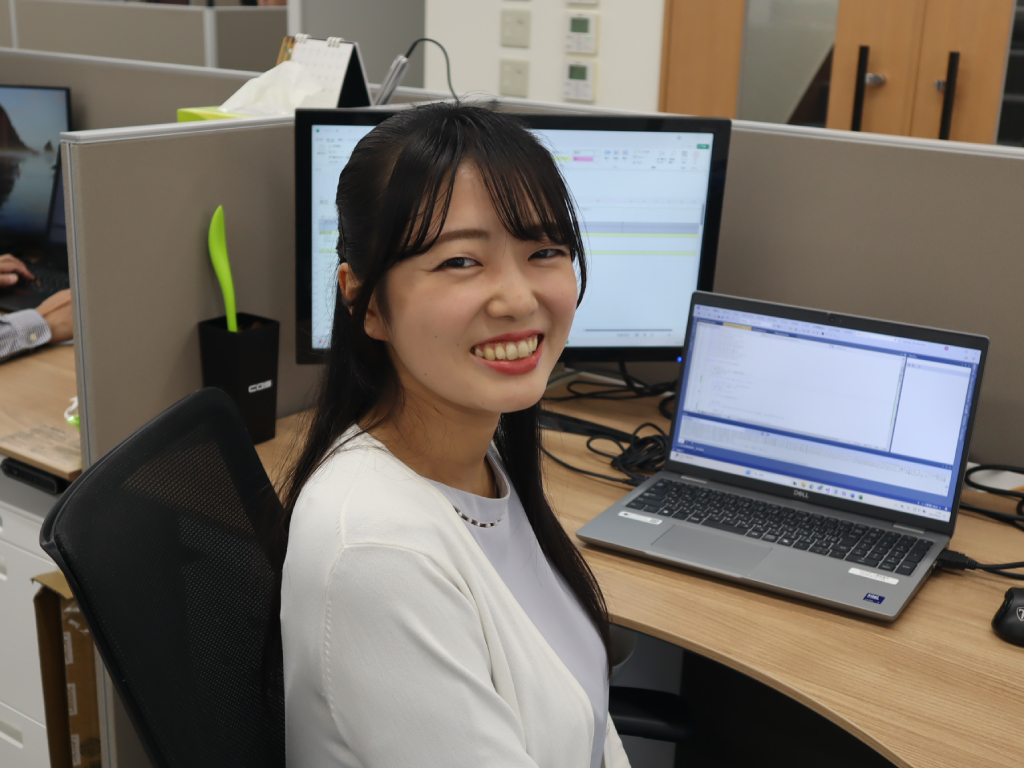 前職ではお客様の業務の生産性を高めるためにVBAツールやRPA導入の提案を行っていましたが、開発部門とのやり取りに多くの仲介を通す必要があり、現場のお客様の声が伝わりにくい状況にもどかしさを感じていました。そんな中、自社開発型で開発から販売、お客様サポートまでを一気通貫してすべて自社行っている当社に魅力を感じました。加えてプログラミング未経験者のサポート体制が整っていたことが大きな後押しとなりました。学生のころからひそかにプログラミングに憧れがあったものの、大学で学んだわけでもなく就職活動時にもITにほんのり携われる会社を選び、開発を仕事とすることは諦めていました。しかし当社は中途採用であるにもかかわらず手厚いプログラミング研修制度が整っており、開発に挑戦する最後のチャンスだと思い応募を決めました。面接でも未経験であることの不安が払拭されるようなお話をしていただいたことで「本当に未経験で挑戦できるんだ」と感じ、入社したいという思いがより強くなったことを覚えています。
